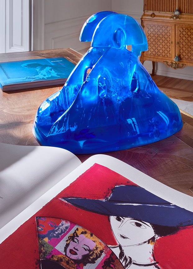 La icónica escultura que preside este libro de artista, realizada en resina cristalina con sus grietas, poros e imperfecciones, y creada de forma especial por Valdés para esta obra, hace de cada ejemplar una edición única e irrepetible.