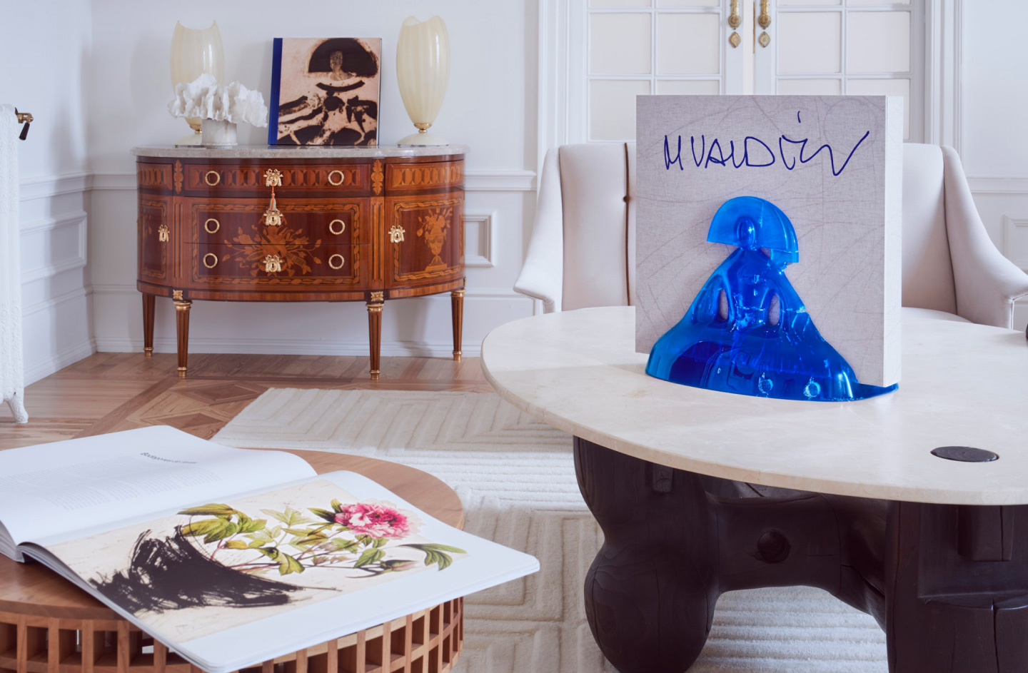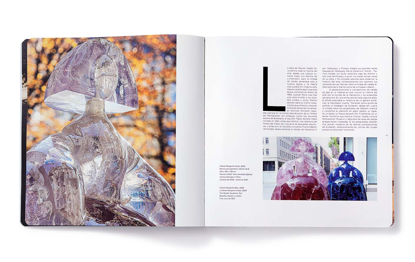 Los volúmenes en su estuche se funden con la menina, revelando a la perfección la esencia del gran artista Manolo Valdés.