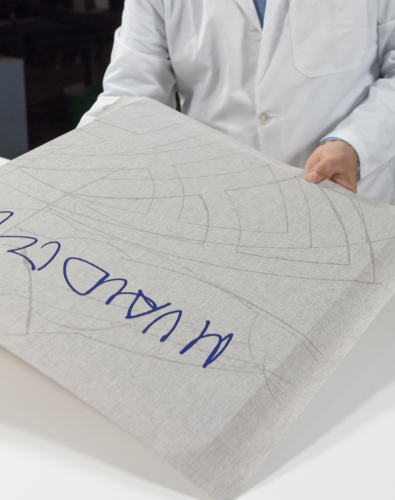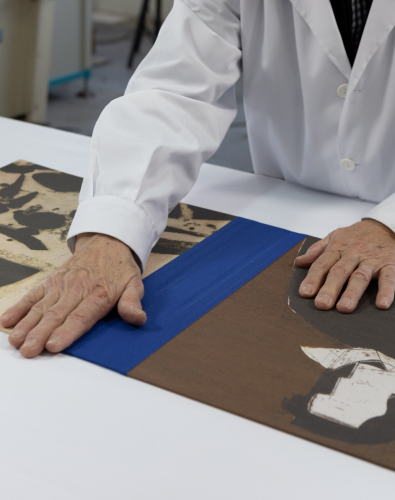 Tres puntos de cola unen cada una de las 53 láminas a las páginas del Libro de Arte, garantizando su óptima conservación.