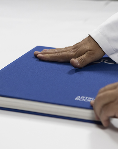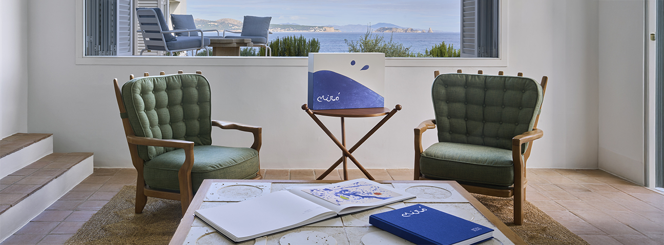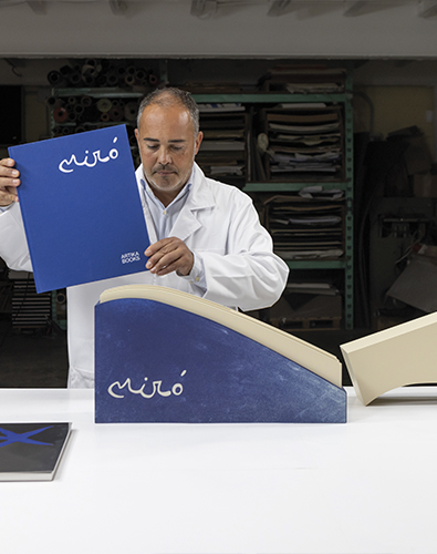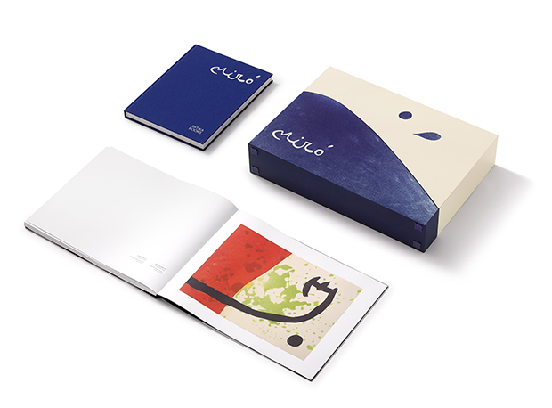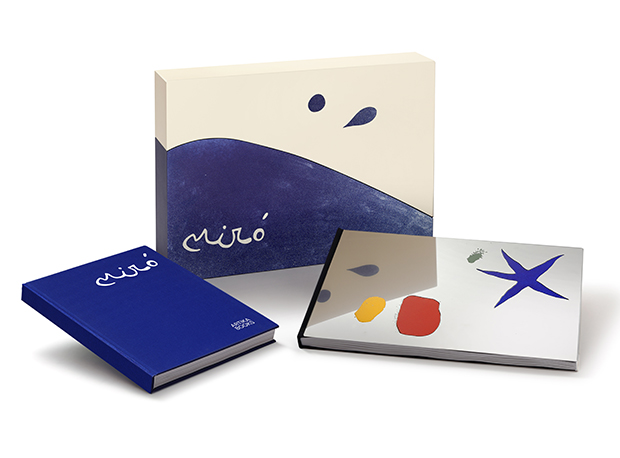 - Cloth-bound cover (Pantone 286) with white foil stamping of Miró’s signature and ARTIKA BOOKS logo